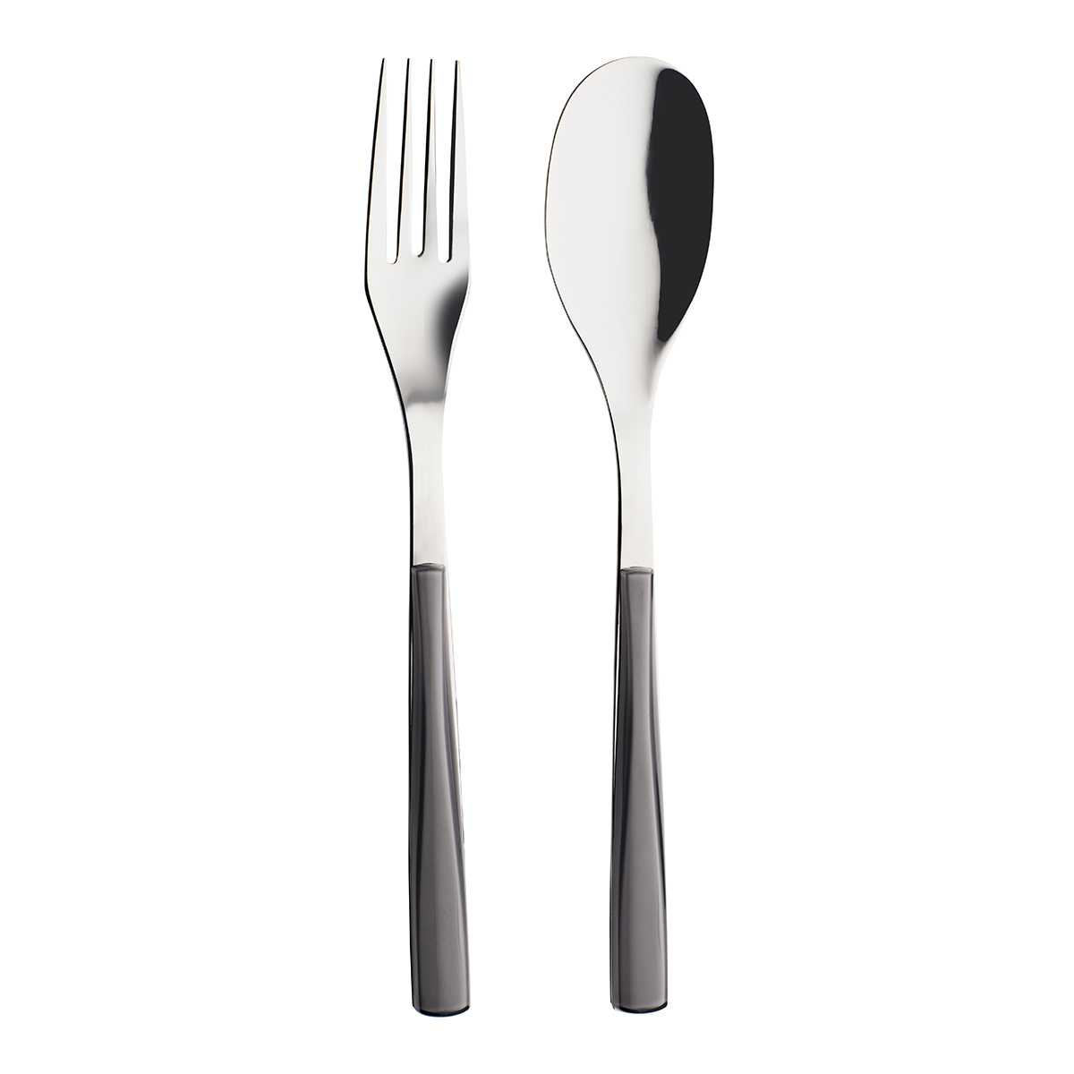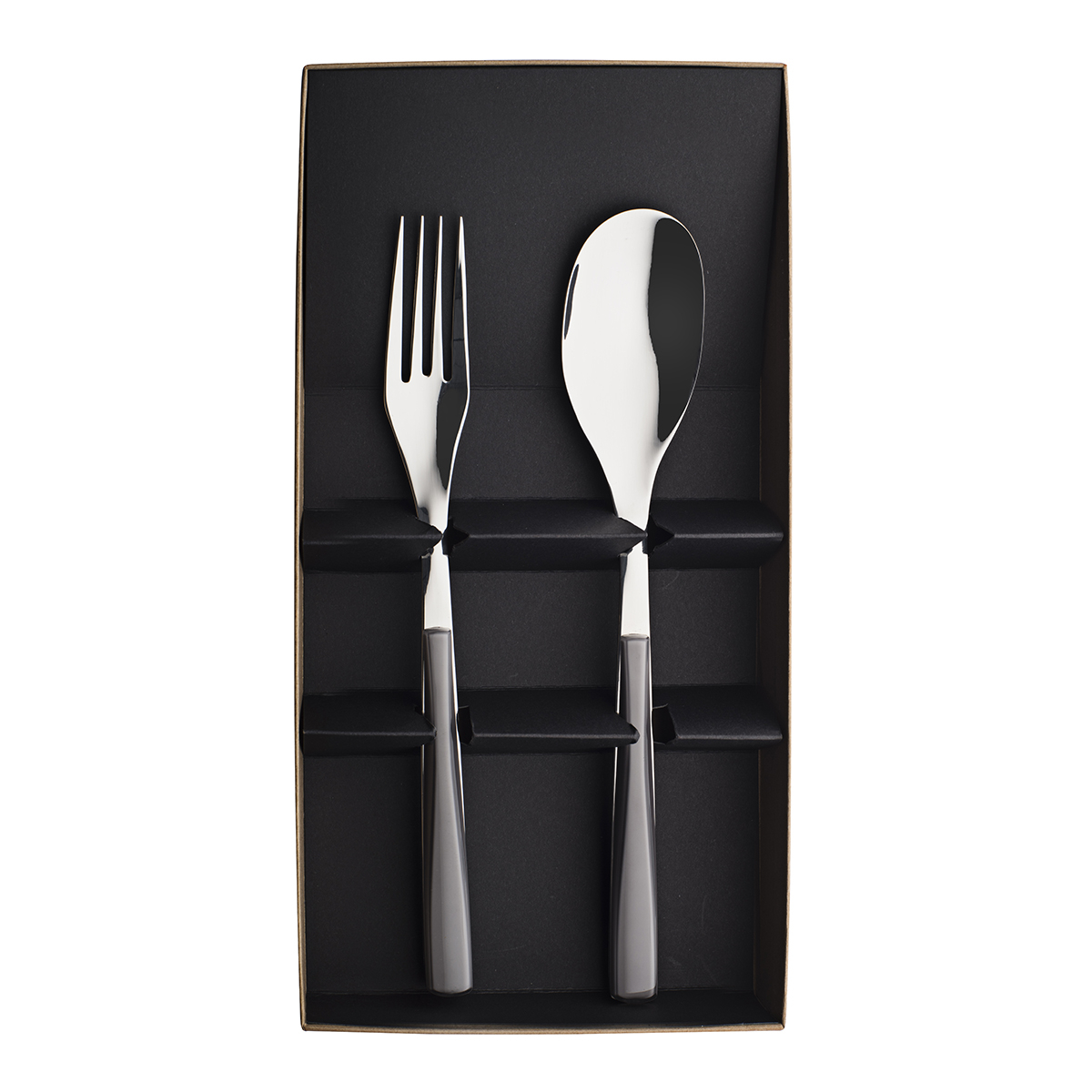 Pour offrir une touche de couleur sur la table, les couverts de service QUARTZ CÈPE sont proposés en coffret cadeau.
