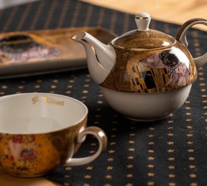 S’offrir une pause thé/café artistique et esthétique, c’est la promesse de la collection G.KLIMT, avec l’oeuvre d’art *Le baiser*. Observez les couleurs et la variété des tons dorés: ils symbolisent la richesse, et auront un effet assuré. Bel exemple d’Art Nouveau, *Le Baiser* exprime un message universel: celui de l’Amour, le Spirituel, le Divin. Un cadeau à offrir? La théière égoïste G.KLIMT fera l’unanimité. Information technique: grâce à une peinture sans particules de métal, il est possible de mettre cette théière dans le micro-ondes.