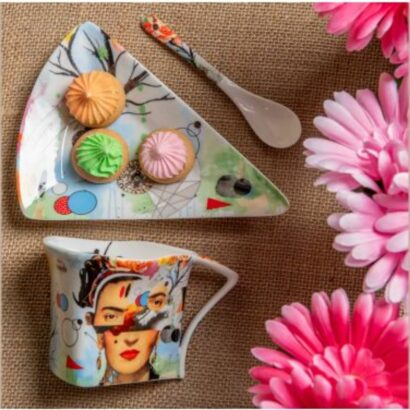 S’offrir une pause thé/café artistique et esthétique, c’est la promesse de la collection Frida Kahlo, de l’artiste Loui Jover. Observez les couleurs et la variété des tons dorés: ils symbolisent la richesse, et auront un effet assuré.