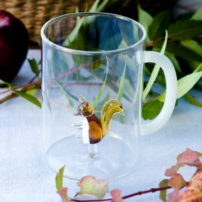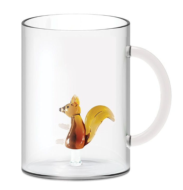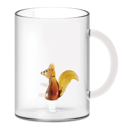 Ce mug en verre borosilicate et son petit sujet écureuil apportera une touche originale, ludique et touchante à vos moments de détente autour d’une boisson chaude.