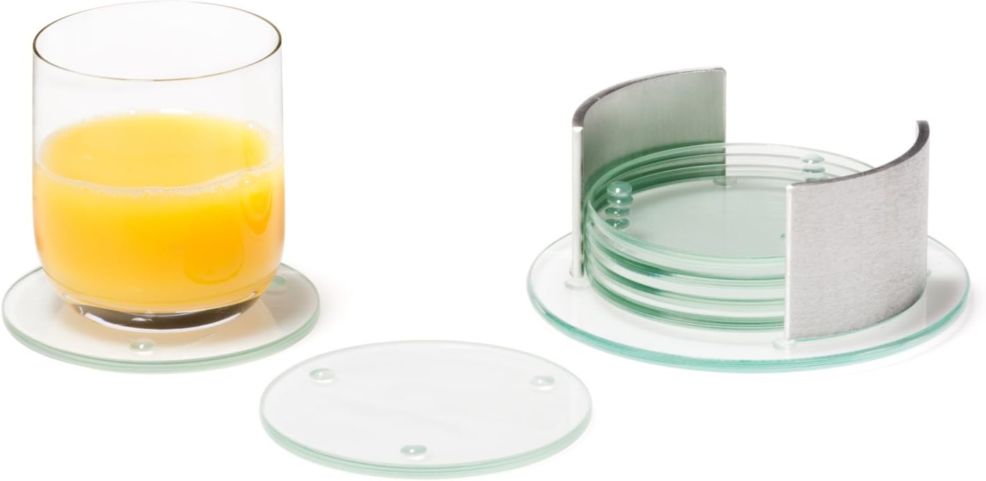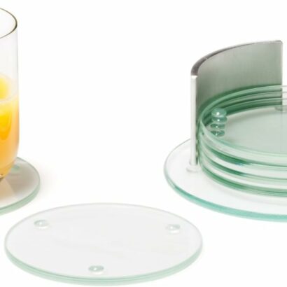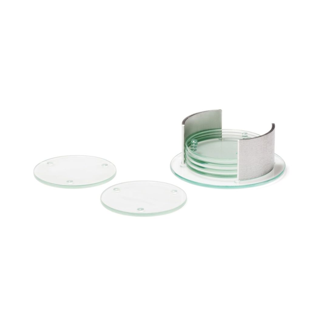 Set de 7 dessous de verre « Spirit » en verre et métal résistants. Des dessous élégants, minimalistes, pures qui mettront en valeur vos boissons tout en protégeant votre table.