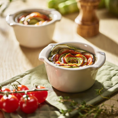 Ce duo de ramequins en céramique vous accompagnera en cuisine au gré de vos envies, salées ou sucrées. Leur céramique de haute qualité permet une cuisson à cœur et homogène de vos recettes. L’email lisse et résistant facilite le démoulage de vos recettes gourmandes ainsi que le nettoyage. Enfin, leur design est conçu pour favoriser leur empilement, pour un stockage dans vos placards facile et sécurisé.