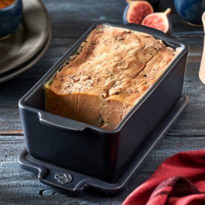 La terrine à foie gras en céramique Peugeot se décline dans une version plus contemporaine : avec sa teinte ardoise satiné, elle s’intégrera parfaitement aux tables les plus actuelles. La céramique permettra une cuisson douce et homogène de vos terrines, pâtés ou foie gras maison, sa presse retirera facilement la graisse superflue de vos foie gras et son couvercle conservera au frais ou servira de support de présentation à table, selon vos envies du moment ! Dotée de poignées, elle est simple à manipuler pour passer du four à la table.