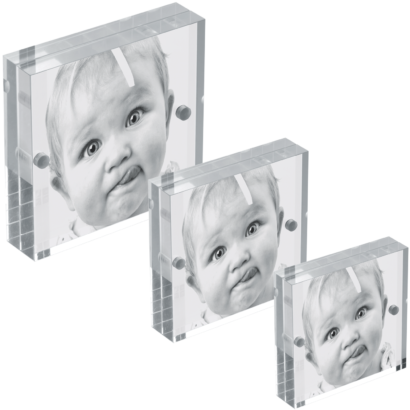 Cadre portrait en acrylique transparent avec aimants. Double face. Epaisseur des feuilles acryliques : 10+10mm, pour les plus grands formats 12+12mm. Les mesures indiquées sont celles de la photo qu’elles peuvent contenir.
