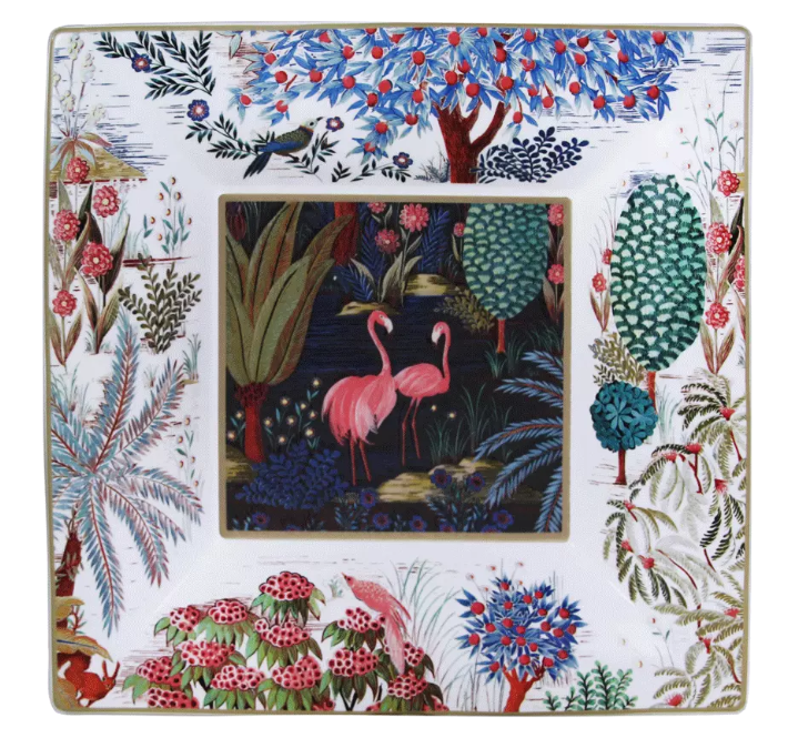 Le Jardin du Palais est une collection éclectique dont la luminosité des couleurs et la précision des dessins nous emmènent au fil d’un voyage enchanteur. Une parfaite transcription d’un monde végétal luxuriant, ponctué d’histoires hors du temps… Les animaux sauvages se mêlent à un paysage aux riches couleurs chatoyantes.
