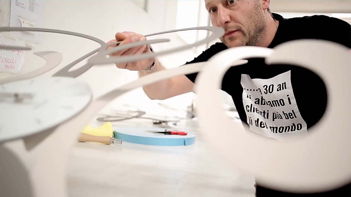 Depuis plus de 40 ans, l’expression créative et les compétences techniques se mélangent et créent des objets de design. C’est un processus linéaire et sophistiqué où le travail du métal est animé par des contours et des formes. Les objets sont nés d’un travail de recherche et de conception et sont tous fabriqués exclusivement en Italie.