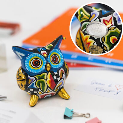 Chouette Herta : Pour les collectionneurs et les amateurs de chouettes. Symbole de sagesse. Avec son costume fantastique plein d’ornements exotiques et ludiques, elle est décorée comme un défilé de carnaval et brille aux couleurs de l’arc-en-ciel.