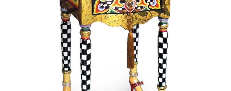 Colonne/table d'appoint (M) de forme torsadée originale et avec une peinture élaborée. Quiconque met un fort accent de couleur avec un objet ou un meuble « traîné » affirme naturellement son style avec assurance. Certains sont plus fous et plus excentriques que les autres, mais tous attirent vraiment l'attention ...