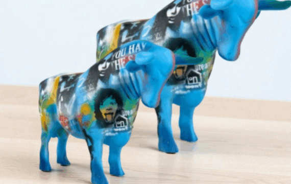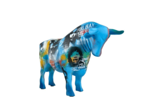 Taureau Street Art – bleu – H28cm