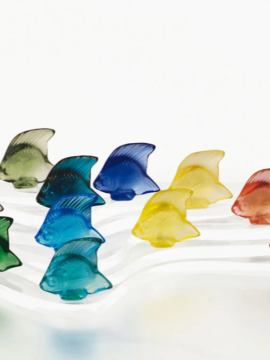 Le Poisson en cristal Lalique incolore tamponné or allie éclat, finesse et savoir-faire d’exception. Une touche de luxe intemporel.