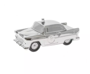 Petite tirelire Sherif en métal et forme de voiture . Tirelire s'ouvrant par le dessous, pratique pour ranger les pièces de votre enfant.